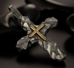 Cross Pendant, Silver and 14K solid Gold Handmade Cross Pendant, Cross Jewelry, P-118