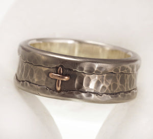 Mens wedding band, Rustic 8mm silver & Copper Ring, personalized wedding band, Promise ring,  RS-1080