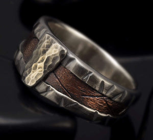 Rustic Mens Wedding Band, 14K solid Gold Silver & copper Ring,Man ring,  Engagement Band, Unique Mens Ring,   RS-1306