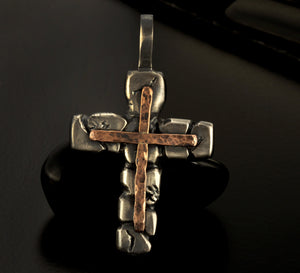 Mens Cross Pendant Silver and Copper Handmade, Cross Jewelry, P-126