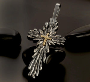 Unique Cross Pendant, Mens Cross Pendant Silver and 14K Gold Handmade, Cross Sterling Silver Handmade Pendant, Cross Jewelry, P-141