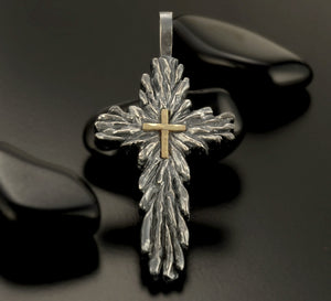 Handmade Cross Pendant, Cross Pendant, Mens Cross Sterling Silver and 14K solid Gold Pendant, Cross Jewelry, P-145