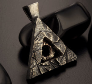 Unique Triangle Pendant in Oxidized Sterling Silver and copper, Rustic Dark Pendant for Men & Women, Silver Triangle Circle Pendant, P-135