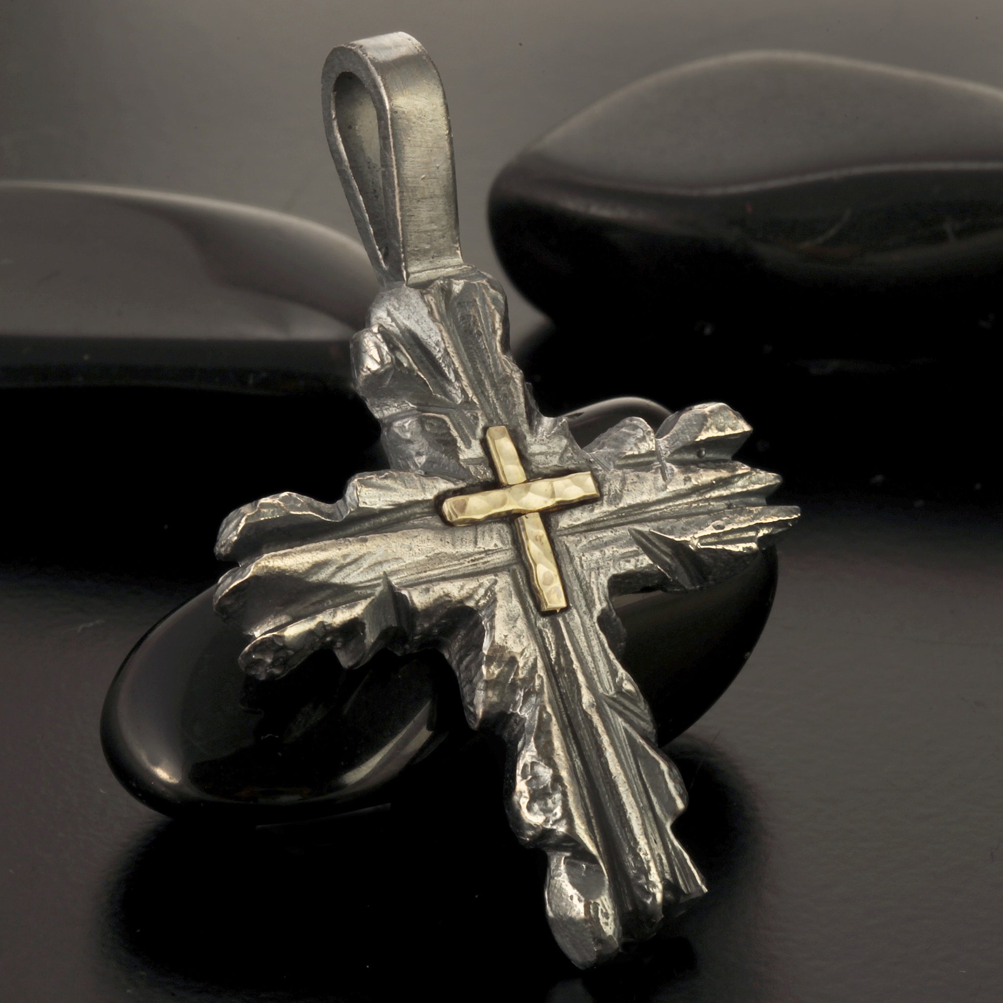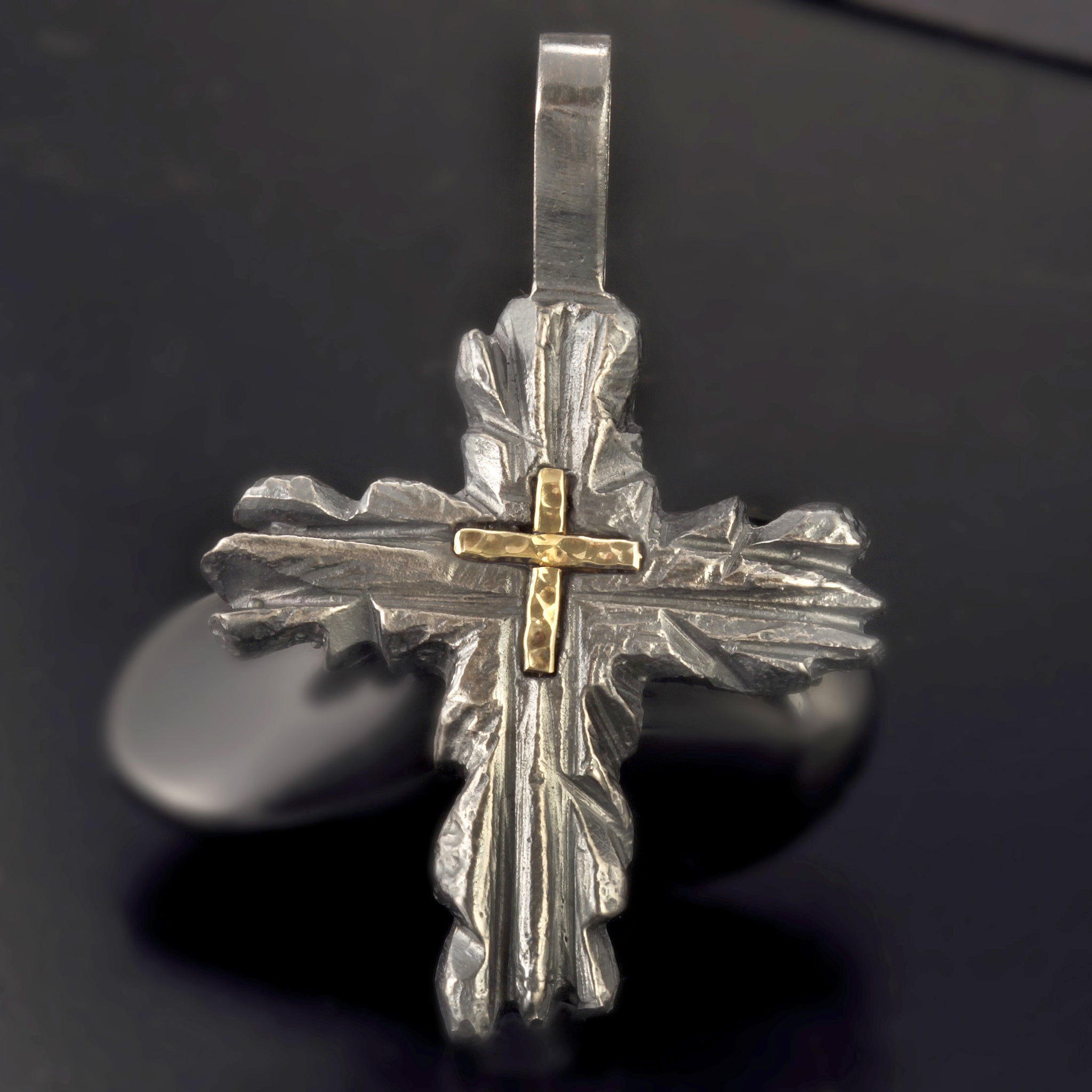 Silver and 14K Gold Handmade Cross Pendant